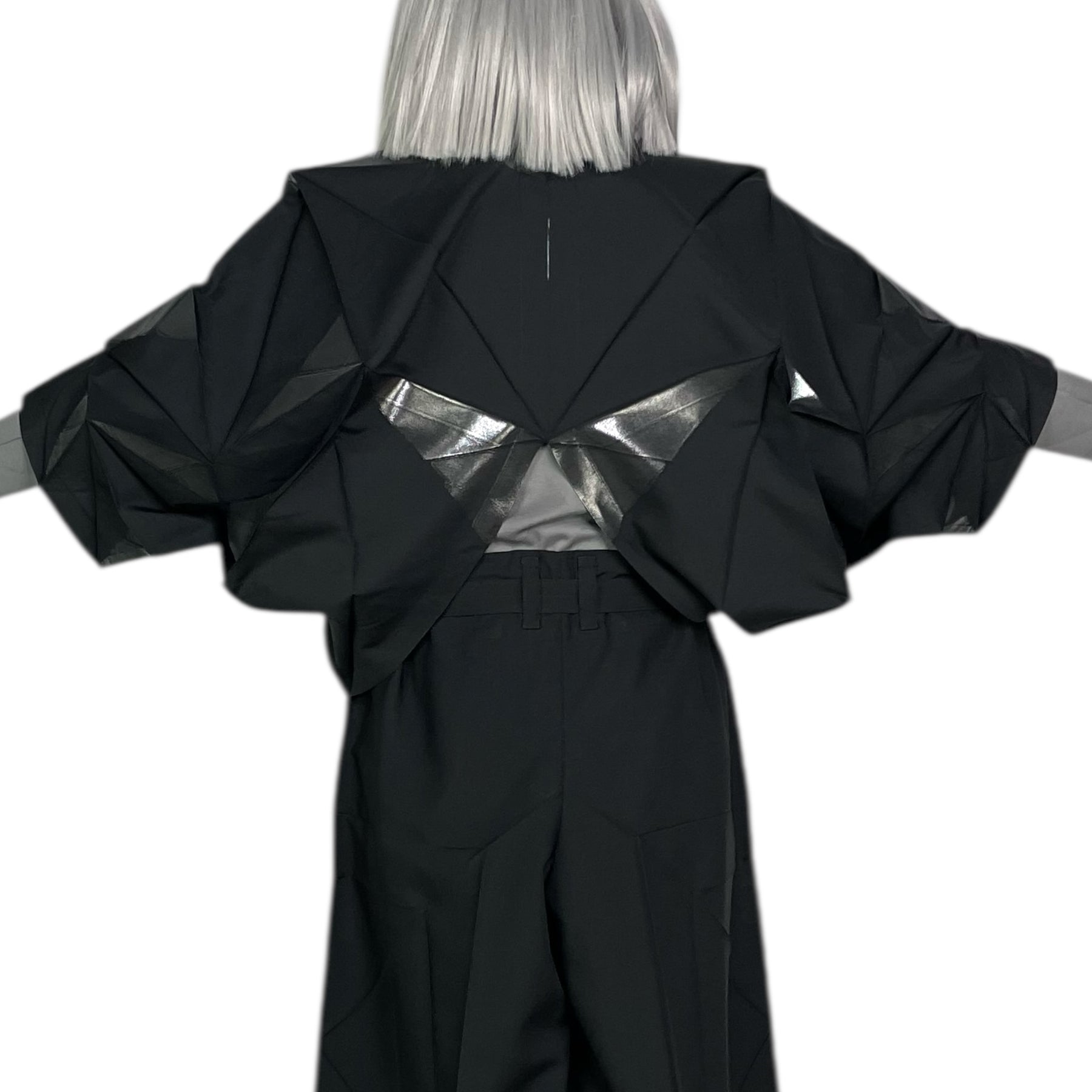 Pleated short sleeve bolero jacket/shrug. Collarless open front.
