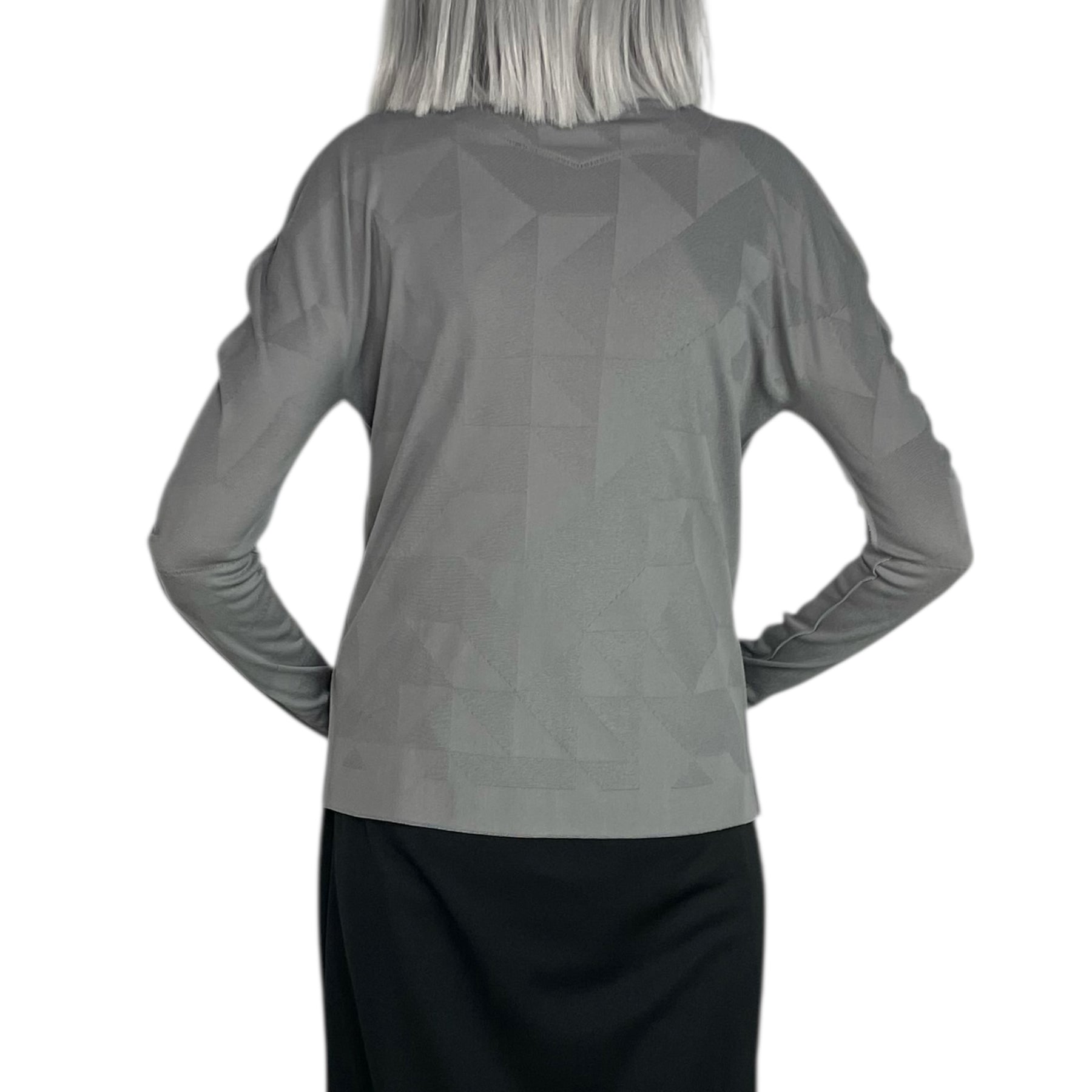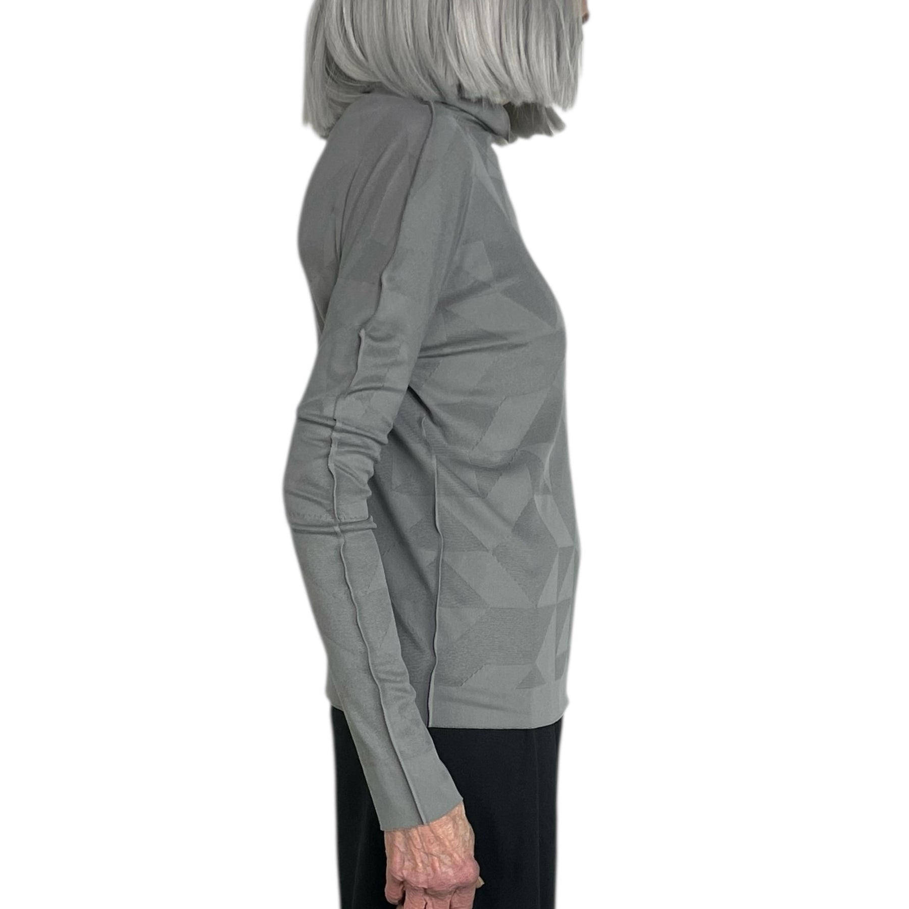 Long sleeve knit top with a high neck.