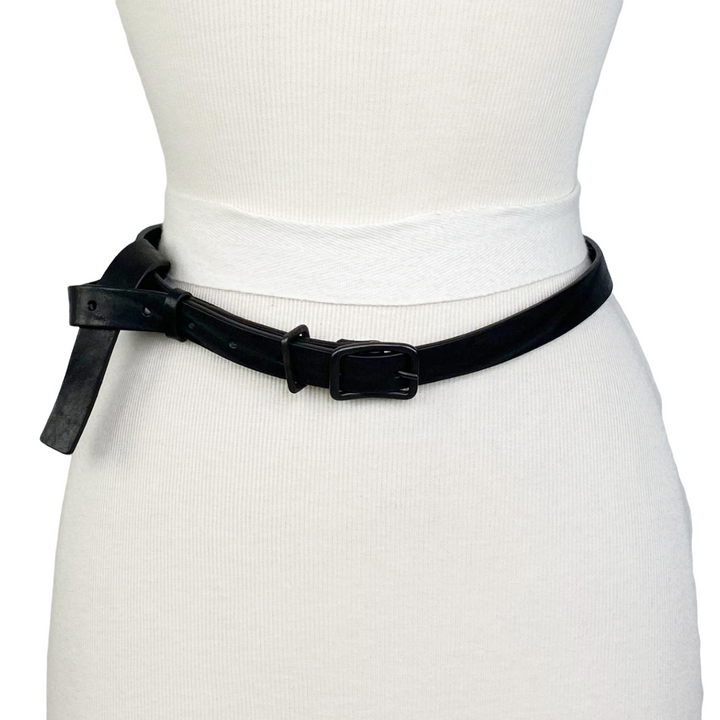 Narrow 3/4" leather belt with 1.5" metal buckle