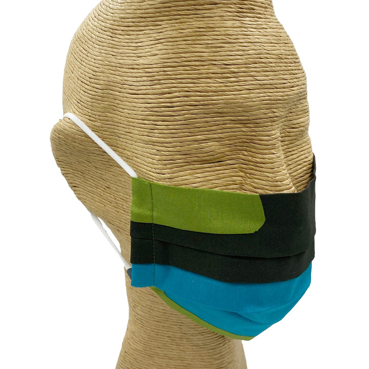 Pleated cotton face mask with elastic ear bands. Comes with a cotton gauze liner