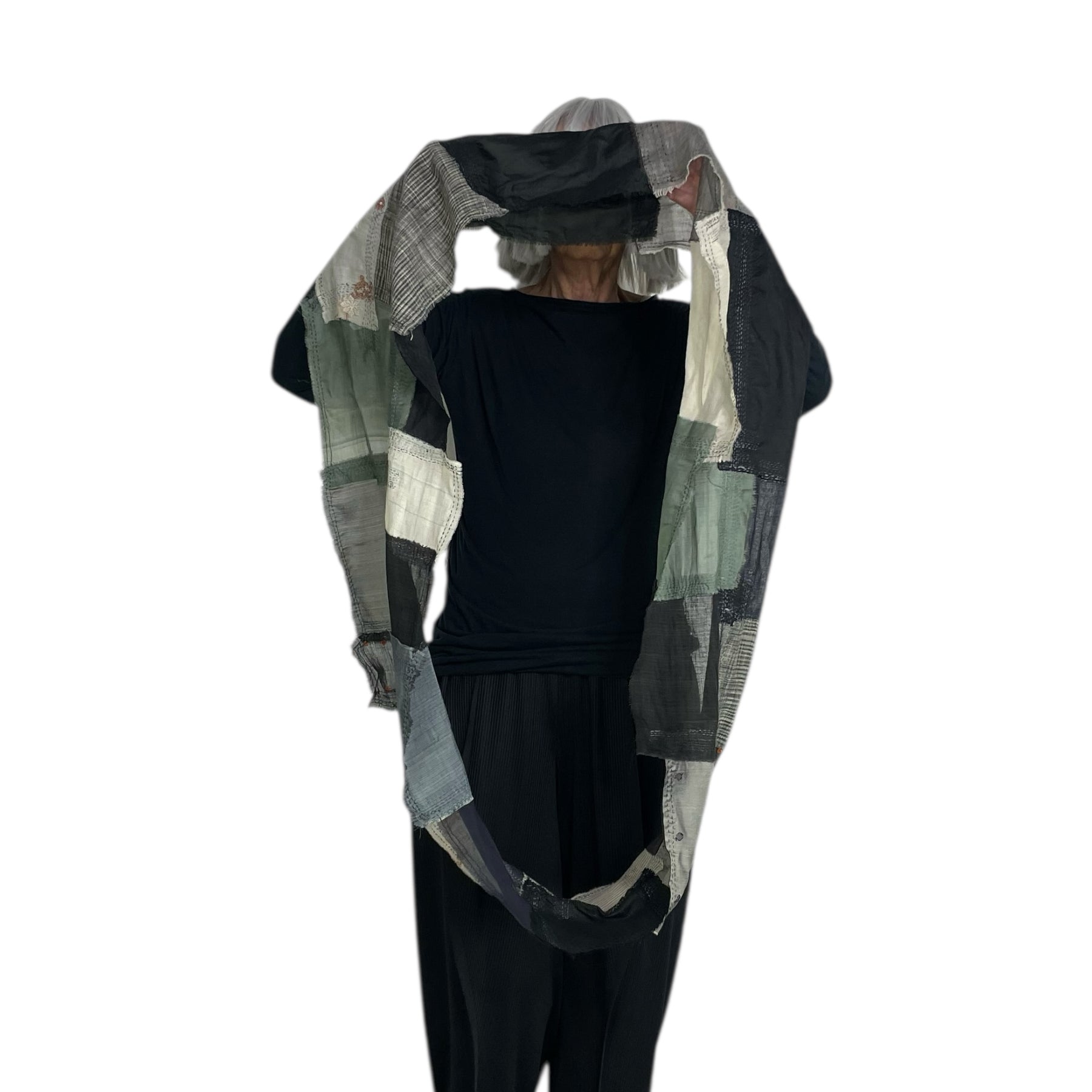Mosaic ombre infinity scarf.  Vintage cotton and silk patches.