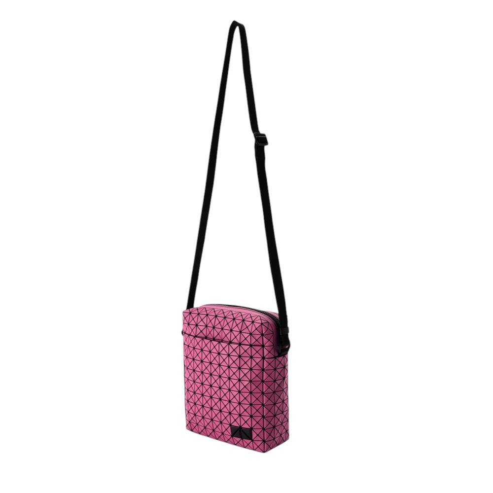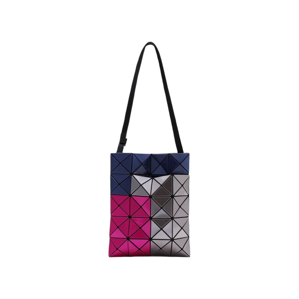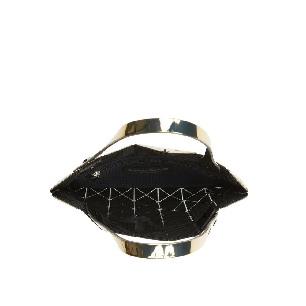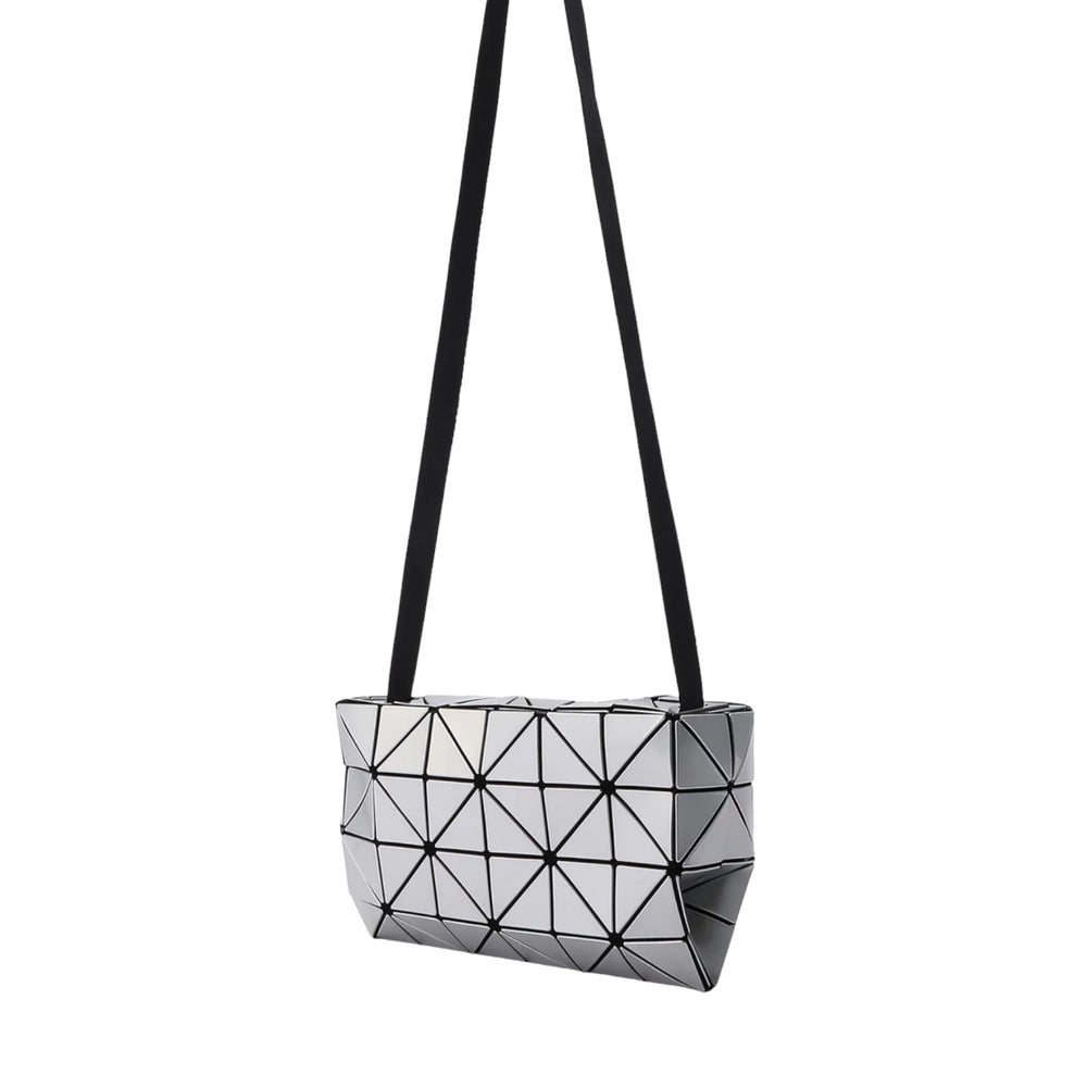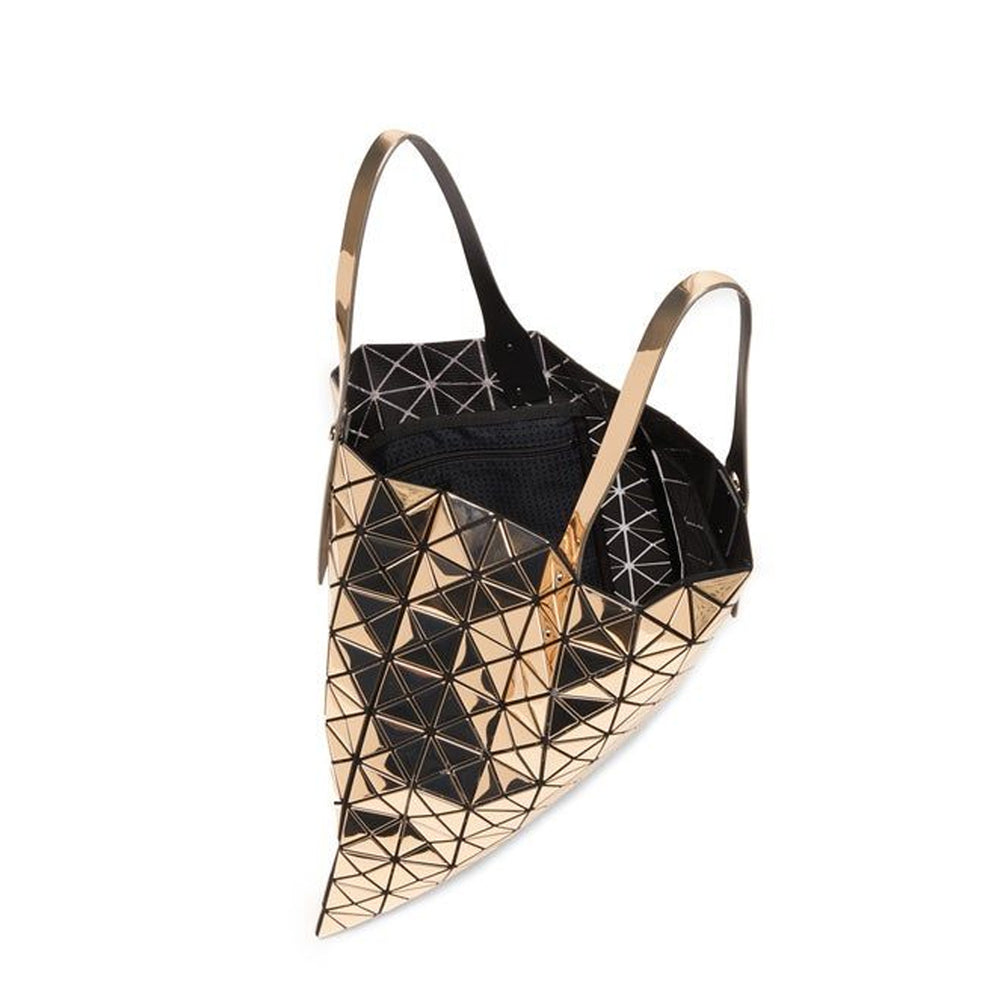 Bao Bao handbags were created by Issey Miyake and first released in 2000.  Affixing triangles of polyvinyl and jersey to mesh fabric, the Bao Bao bag is both an experiment in conceptual design and a fashion statement. The design pays tribute to Frank Ghery who explored ‘shapes made by chance’ in his building designs such as the Bilbao Museum, resulting in the namesake Bao Bao. The interlocking, geometric design allows the bag to transform and change as it moves, is filled up, and is put down, continually changing into a one-of-a-kind design entirely dependent on the user.