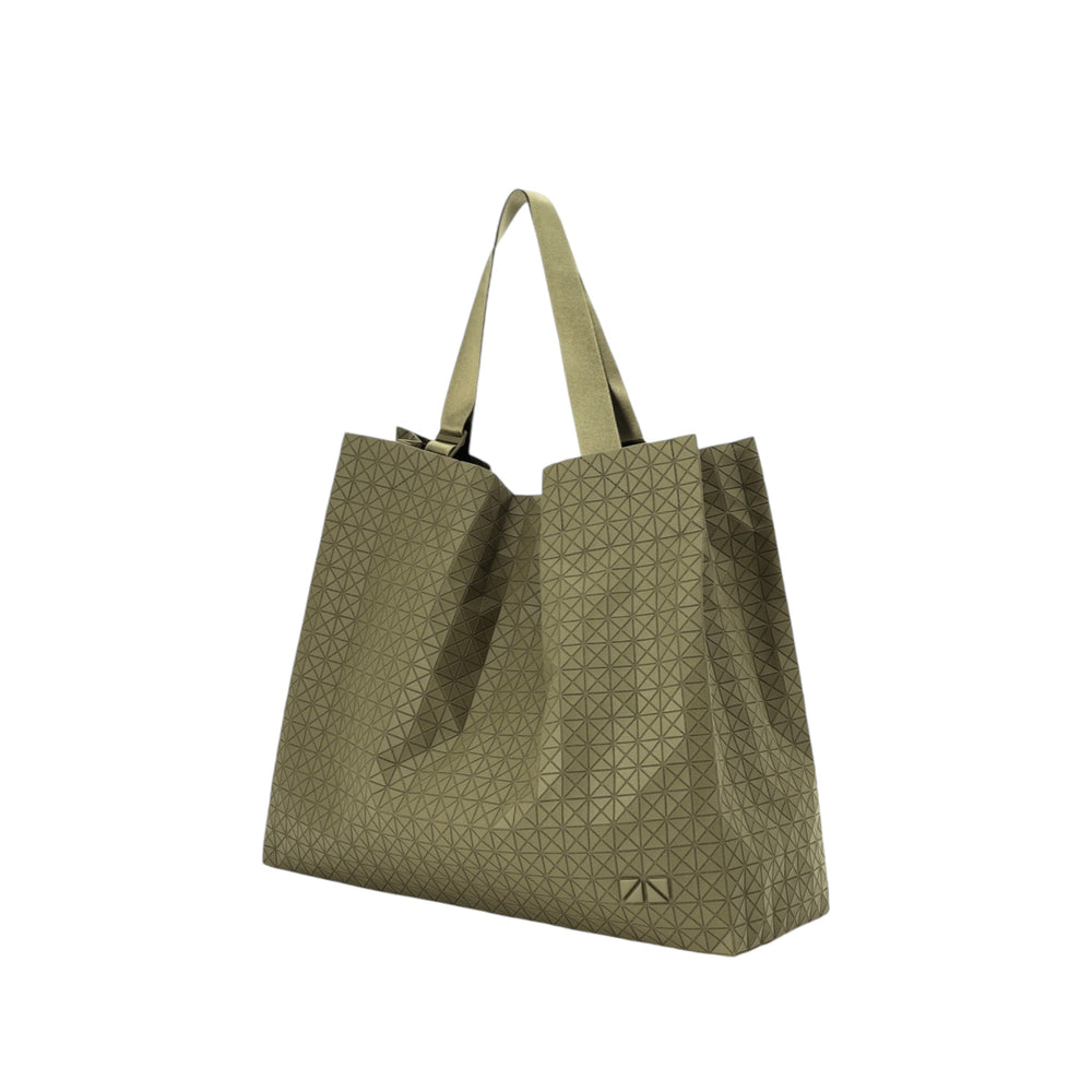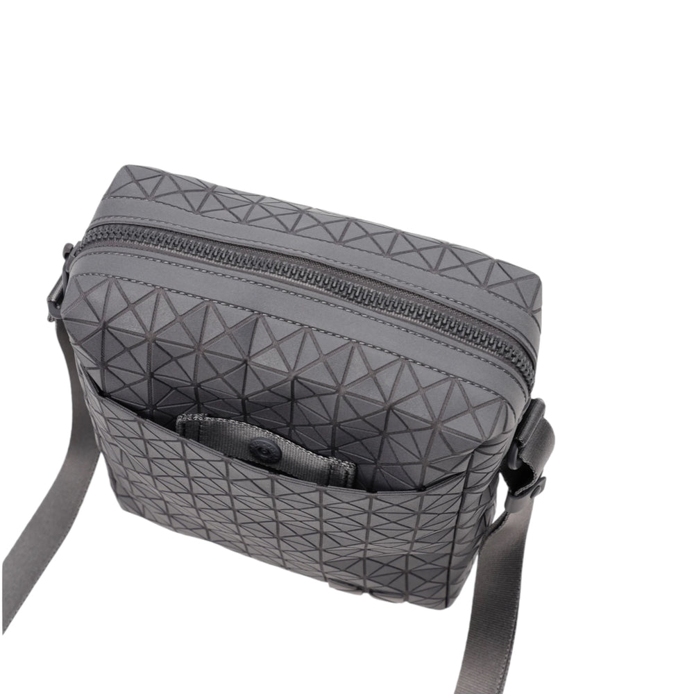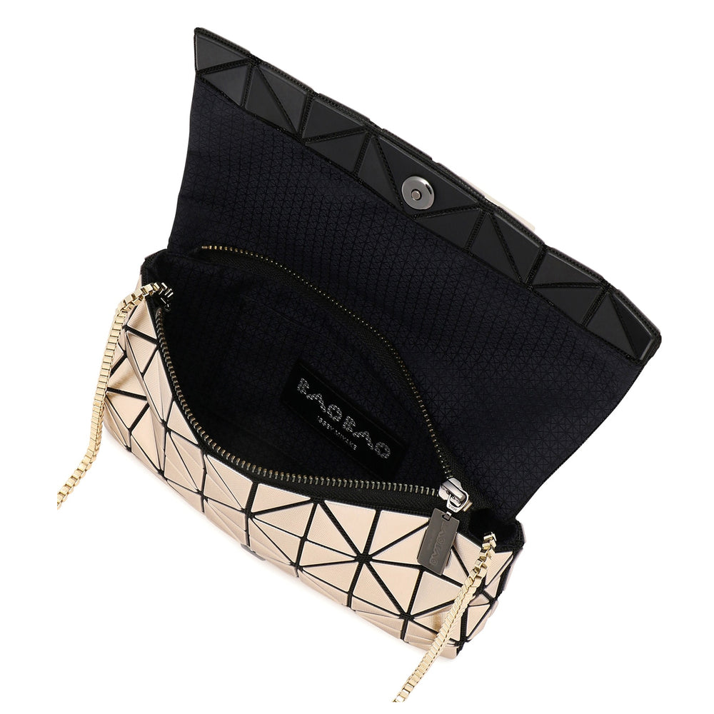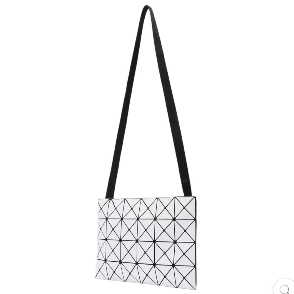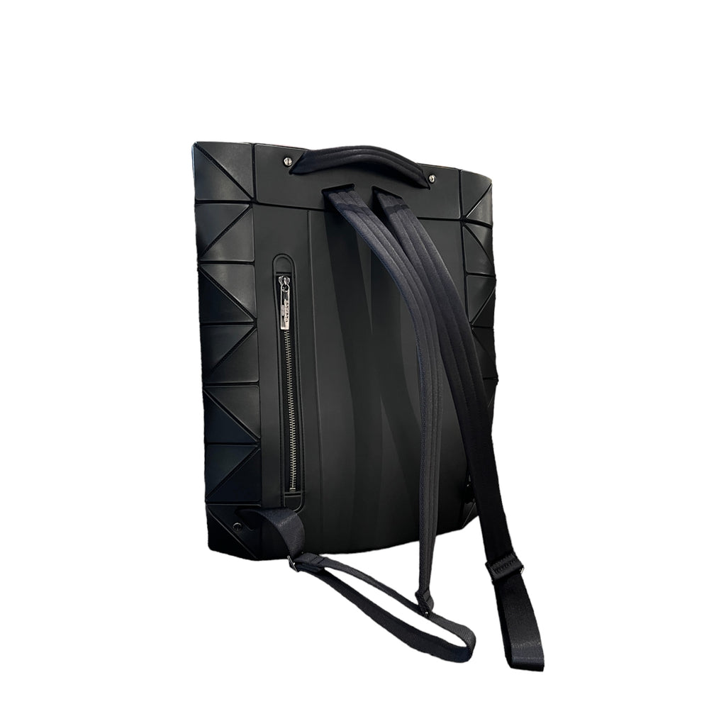 Bao Bao handbags were created by Issey Miyake and first released in 2000.  Affixing triangles of polyvinyl and jersey to mesh fabric, the Bao Bao bag is both an experiment in conceptual design and a fashion statement. The design pays tribute to Frank Ghery who explored ‘shapes made by chance’ in his building designs such as the Bilbao Museum, resulting in the namesake Bao Bao. The interlocking, geometric design allows the bag to transform and change as it moves, is filled up, and is put down, continually changing into a one-of-a-kind design entirely dependent on the user.
