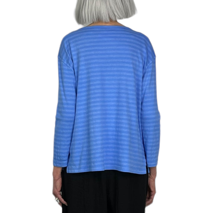 Long sleeve crew-neck t-shirt + 3". Tonal stripes and side slits.