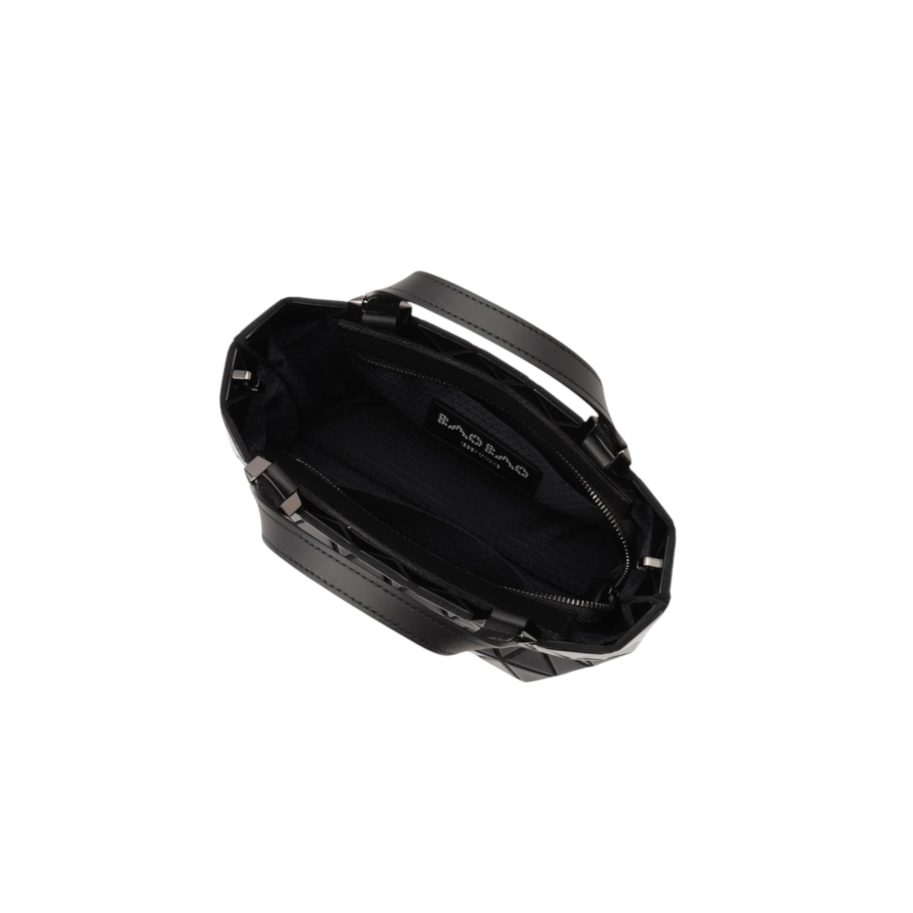 CRYSTAL GLOSS is made from glossy enamel material. Featuring metal hardware and leather straps.