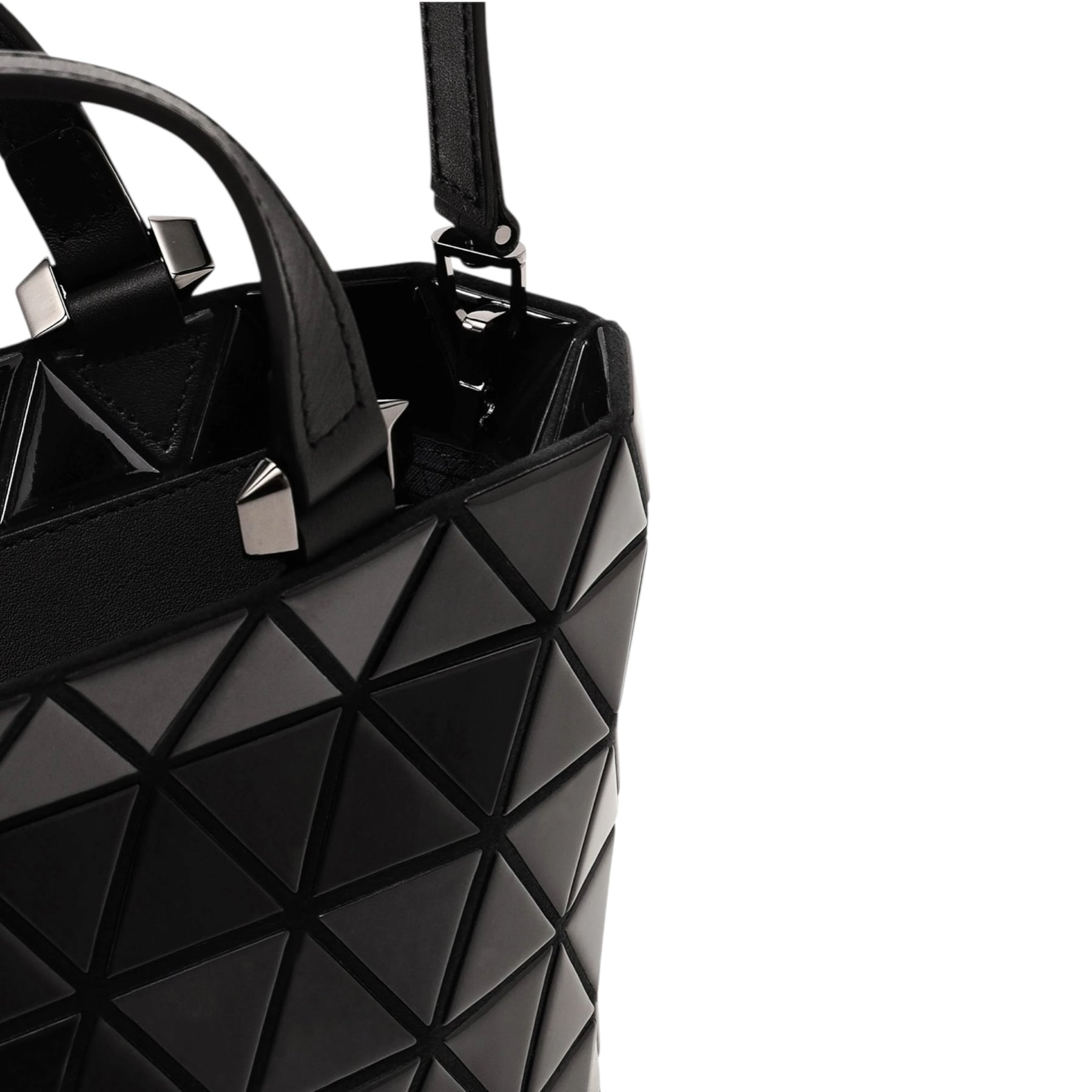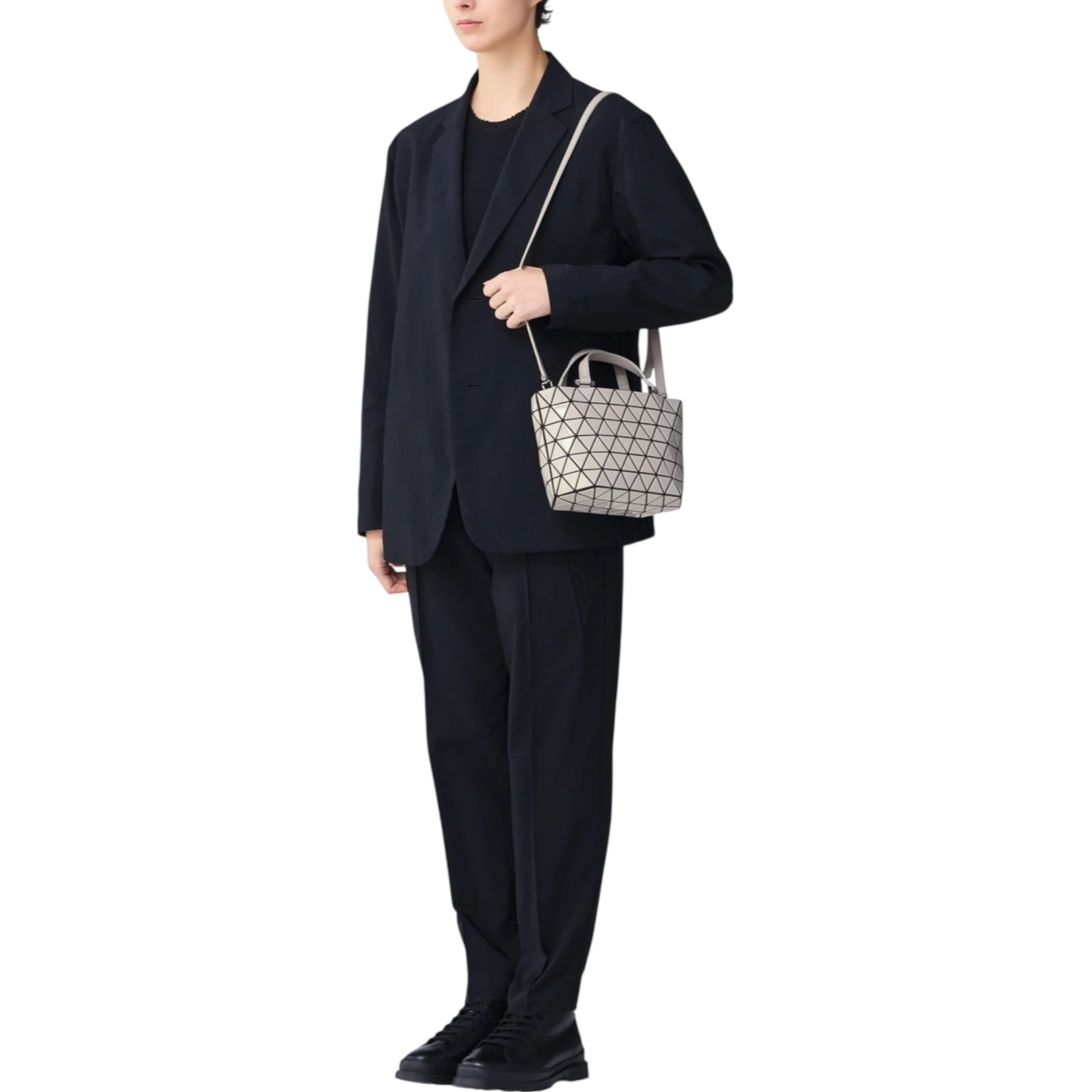 Double handle zip top bag with two interior pockets. Sits upright on it flat bottom. Comes with a detachable adjustable strap for shoulder or crossbody wear.