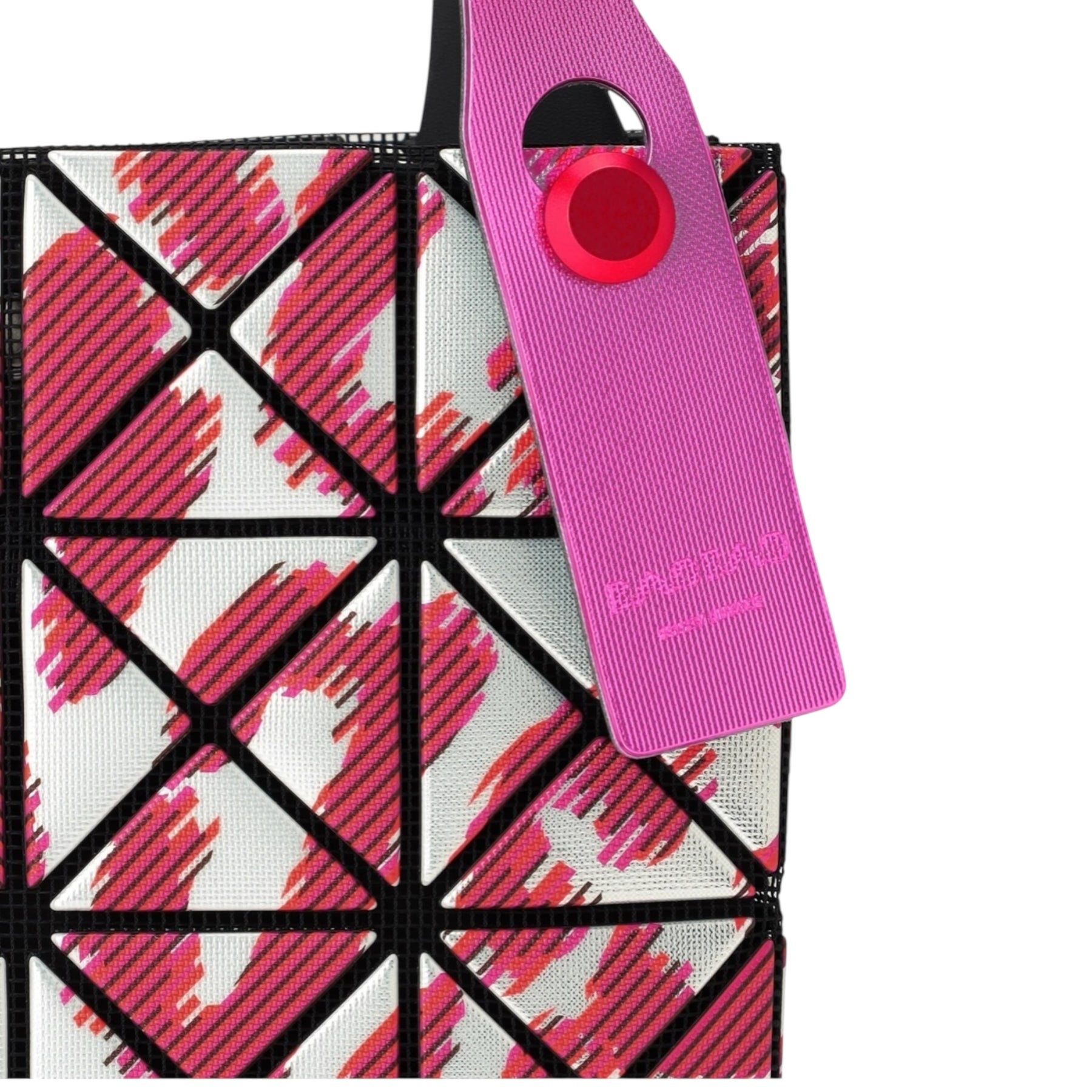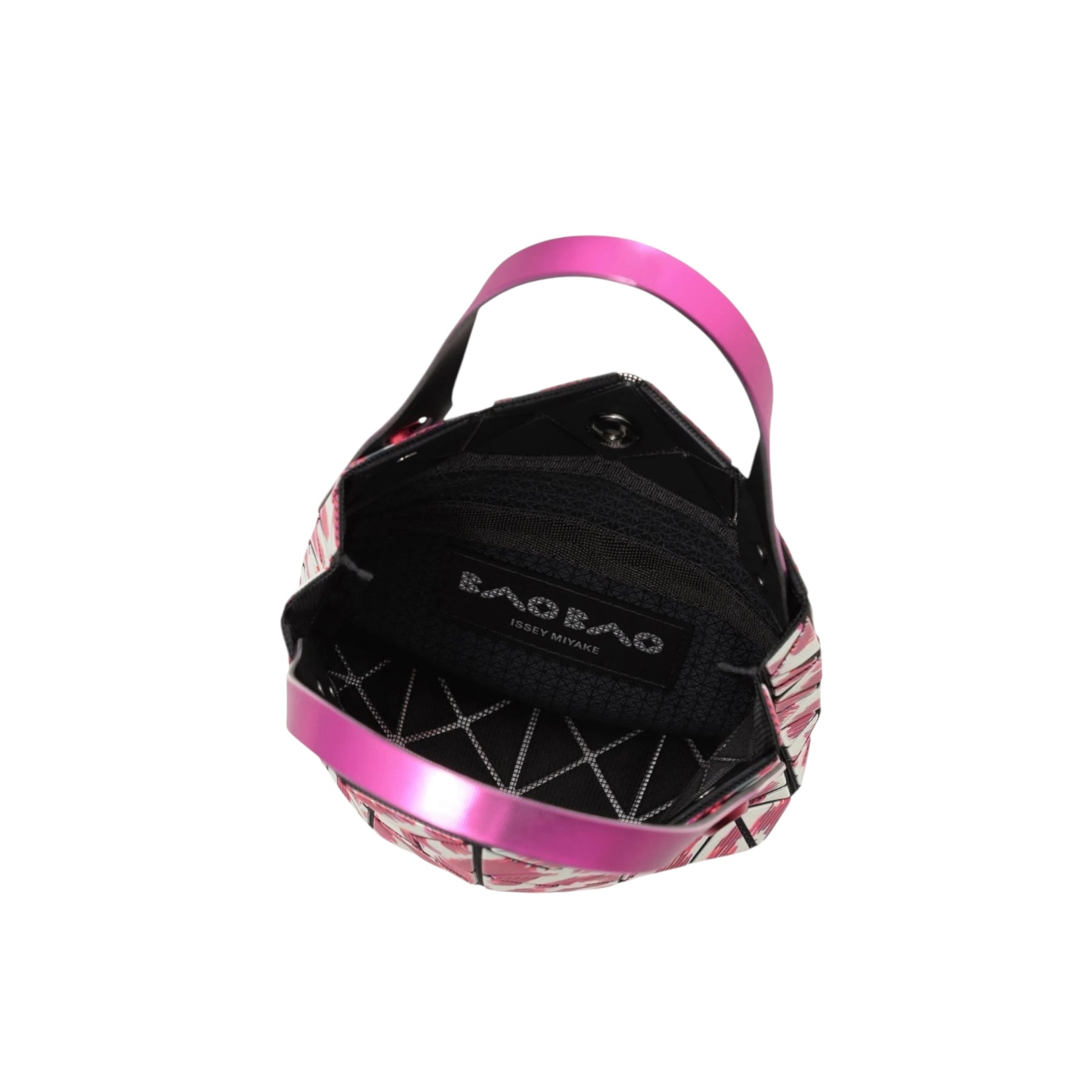 Gusseted mini tote bag with an interior pocket and snap top closure. Double handles.