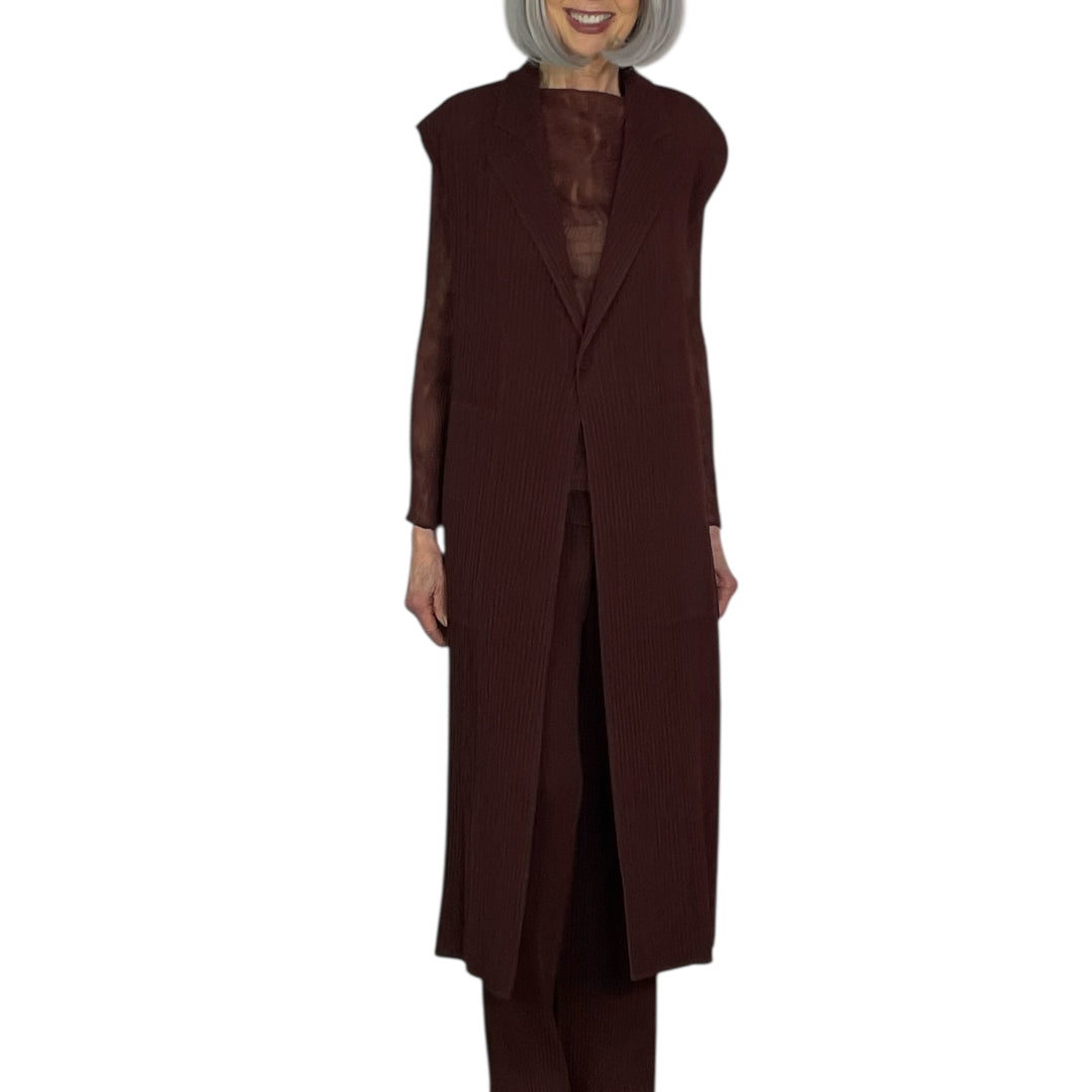 Since 1971, Issey Miyake has been at the forefront of the great Japanese fashion designers. Melding an East West perspective, Miyake took the essence of the kimono and reinvented it with ground breaking textile technology. The resulting designs are fluid yet architectural garments allowing the wearer to freely express their own personal style. Constantly researching and experimenting with innovative techniques of textile production and design, Issey Miyake and team have gained international recognition for their ability to blur the lines between art, fashion and technology.