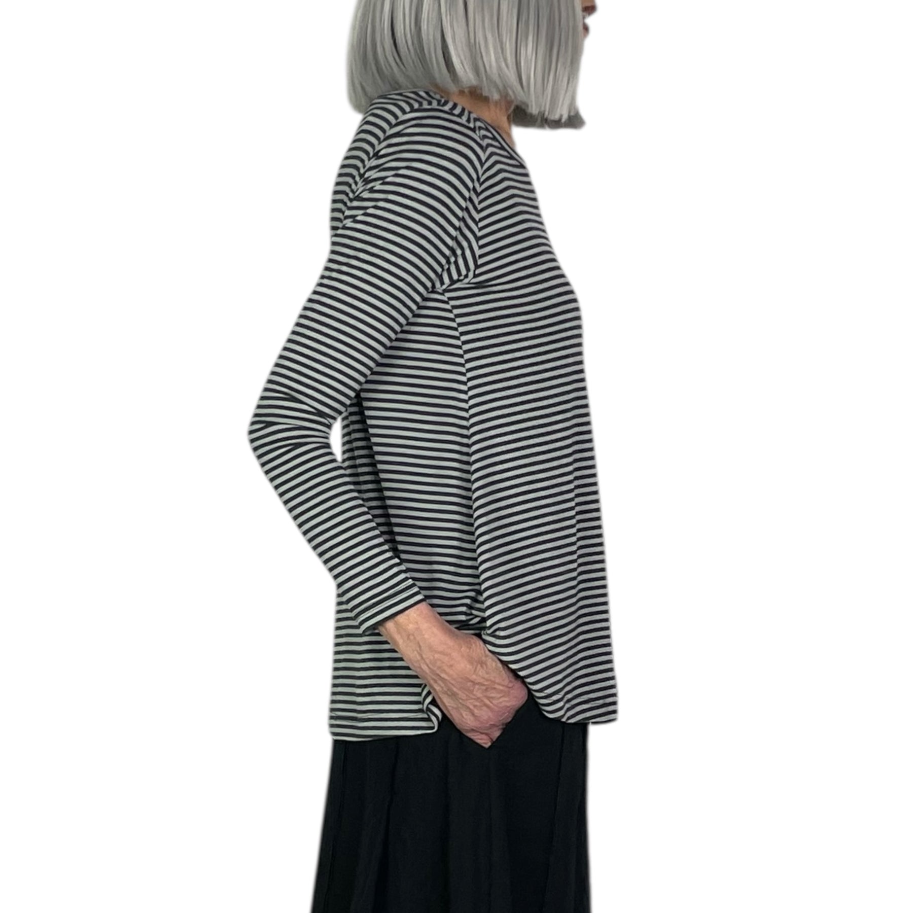 Long sleeve round neck T-shirt with an A-line silhouette.