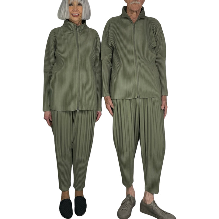 Unisex pleated high-neck jacket with 2-way zip front and two side pockets. Straight cut.