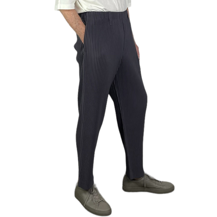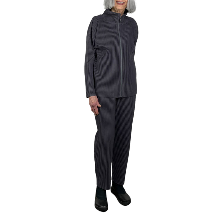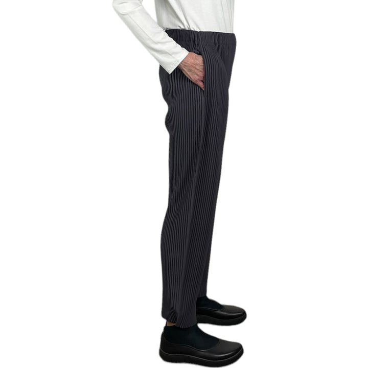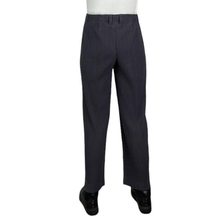 Unisex straight cut pant with elasticized waistband and belt loops. Button fly front, and on-seam side pockets.