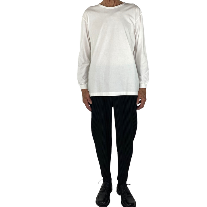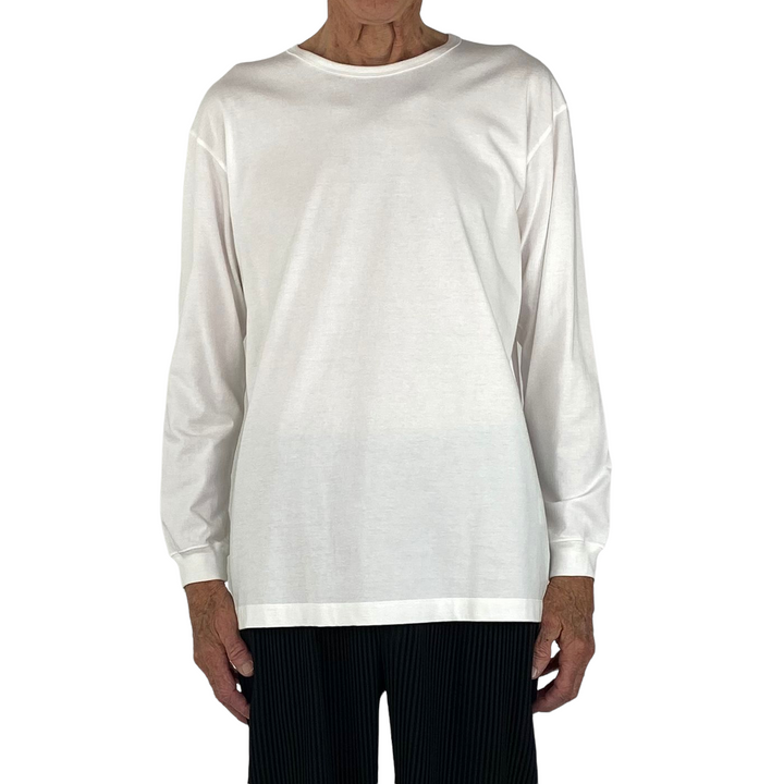 Long sleeve crew-neck t-shirt with banded neckline and cuffs