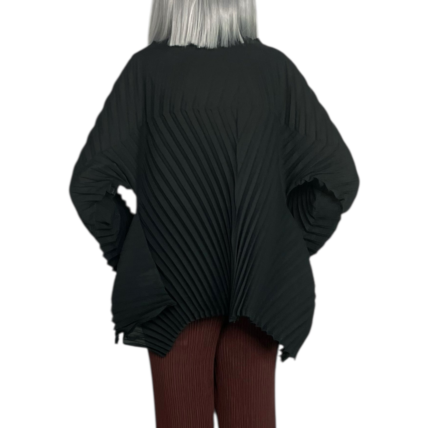 Pleated long sleeve top with a funnel neckline and shaped silhouette.