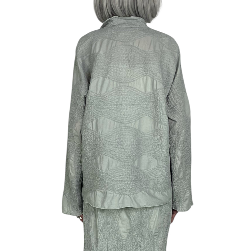 Nuno, is the Japanese word for functional fabric. It is also the name of the renowned Japanese textile firm founded in 1984 by the master textile artist Junichi Arai, who created computer designed woven fabrics for Issey Miyake and Rei Kawakubo in the early 1970’s. In 1987 Reiko Sudo took over as design director and has kept Nuno textiles at the forefront of contemporary textile design. By merging the centuries old textile skills of small mills with factories having advanced modern day technology, Nuno has been able to continue creating contemporary and innovative textiles that are timeless, durable and functionally unique. Environmentally responsible, Nuno has been committed to reducing waste by up cycling all scraps and focusing on using kibiso, the outer layer of the silk cocoon.