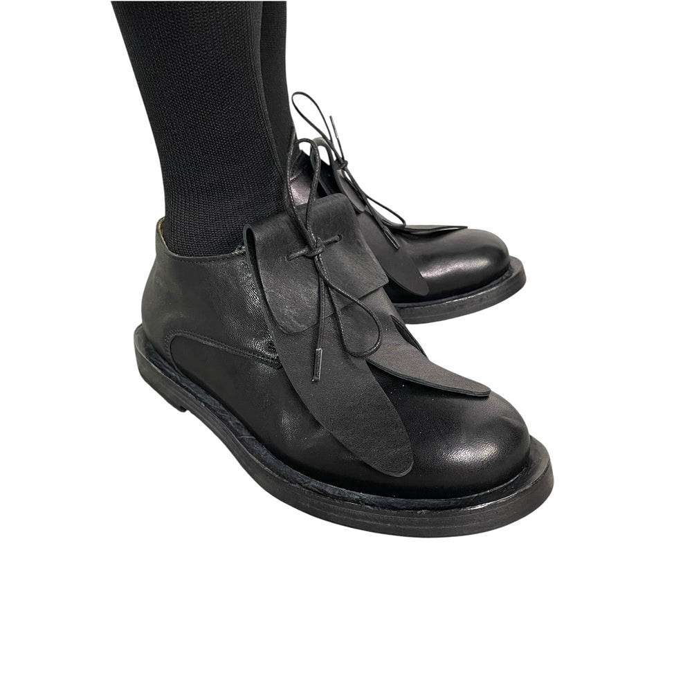 German brand Rundholz is world-renowned for creating fashion that combines innovative designs, unconventional details and experimental fabric treatments for a distinctly independent look. The husband and wife duo behind the company, Carsten and Lenka Rundholz, work together in a focused and steadfast manner to present their singular and inspirational style every season. Casual styling and soft, approachable fabrics define Rundholz’s Black Label, first presented in 2006. The clothing from Black Label uses everyday fabrics like stretch cotton and linen to render softer versions of the Mainline silhouettes while also streamlining the avant-garde Rundholz style. Emphasis is on exceptional cotton shirting, sweatshirt materials made into fashion forward pieces and tunics as outerwear. Despite the dark palette, all fabrics are light and transitional. This variety of easy-going and relaxed looks make the collection accessible to all styles.