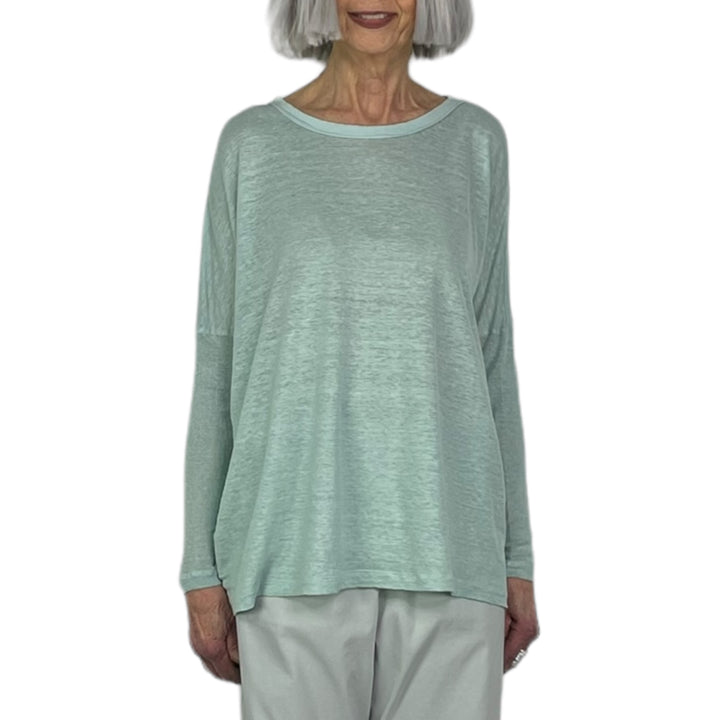 Long sleeve round neck jersey t-shirt. Drop shoulders, relaxed fit.