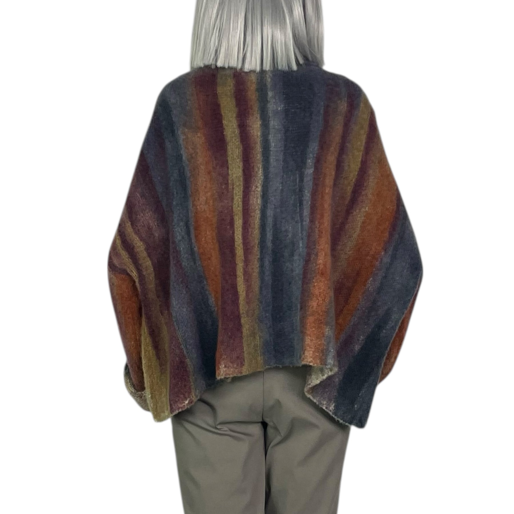Long sleeve painted cashmere open front coat with a shawl collar and two front patch pockets. Relaxed fit. Also shown worn upside-down for a different silhouette.