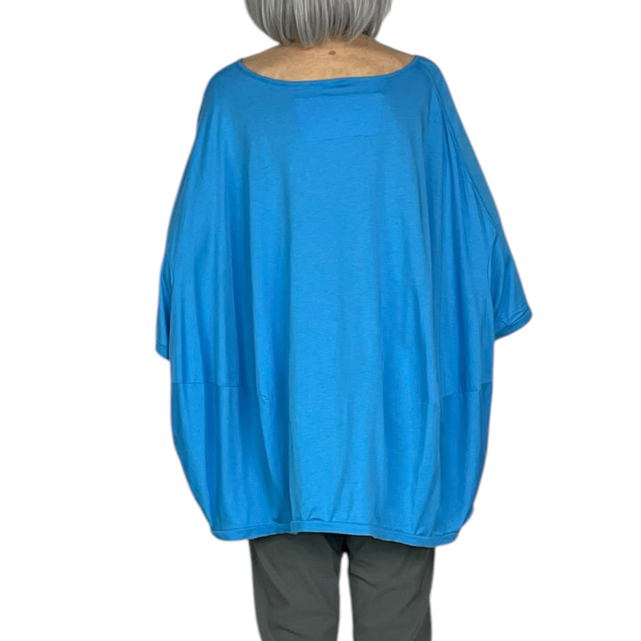 Balloon shaped short sleeve t-shirt with a crew neckline. Banding at cuff and hemline. Oversized fit.