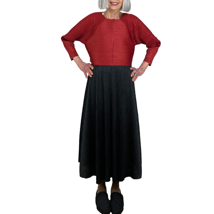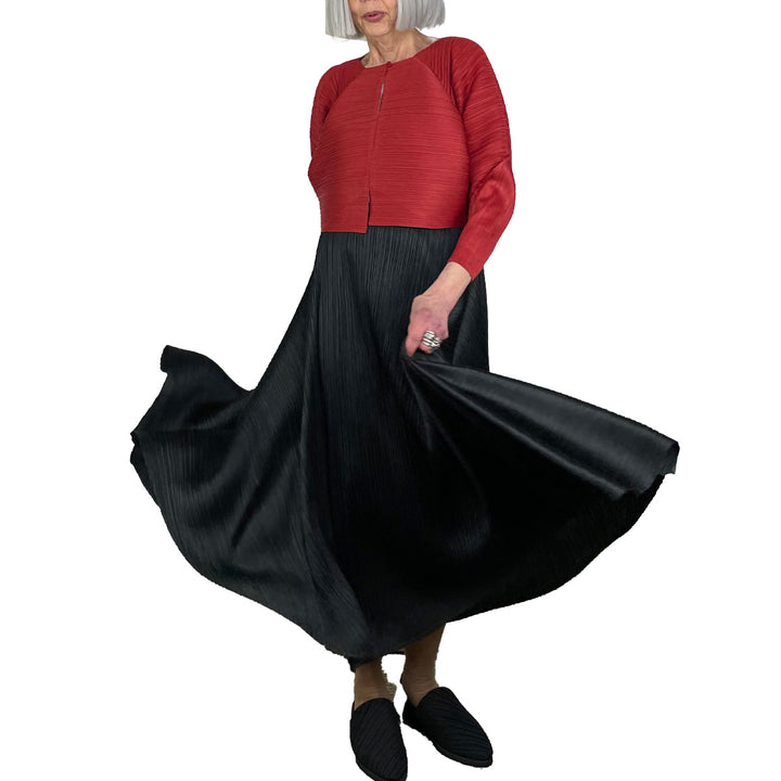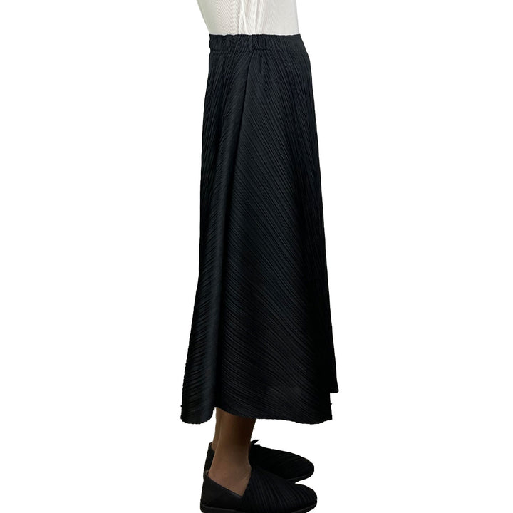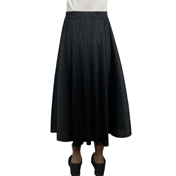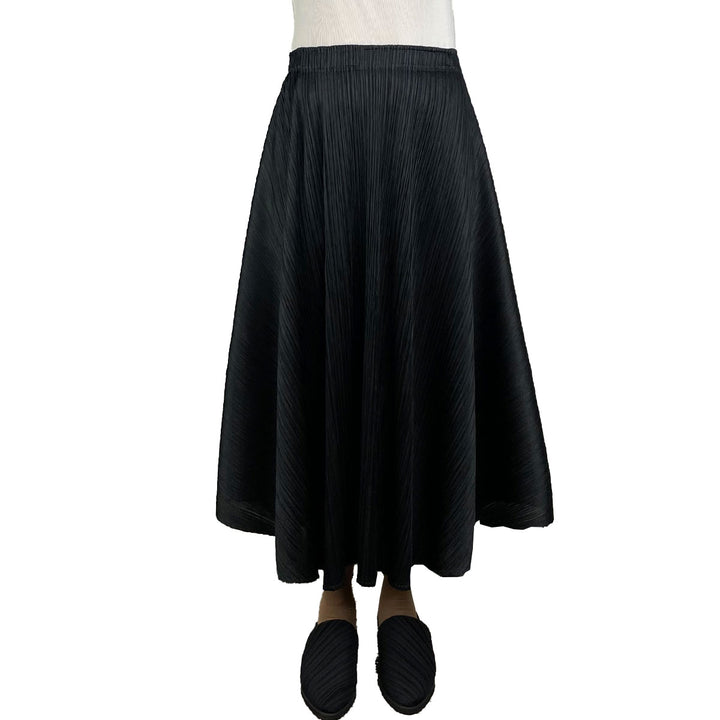 Long flared pull-on skirt with elasticized waistband.