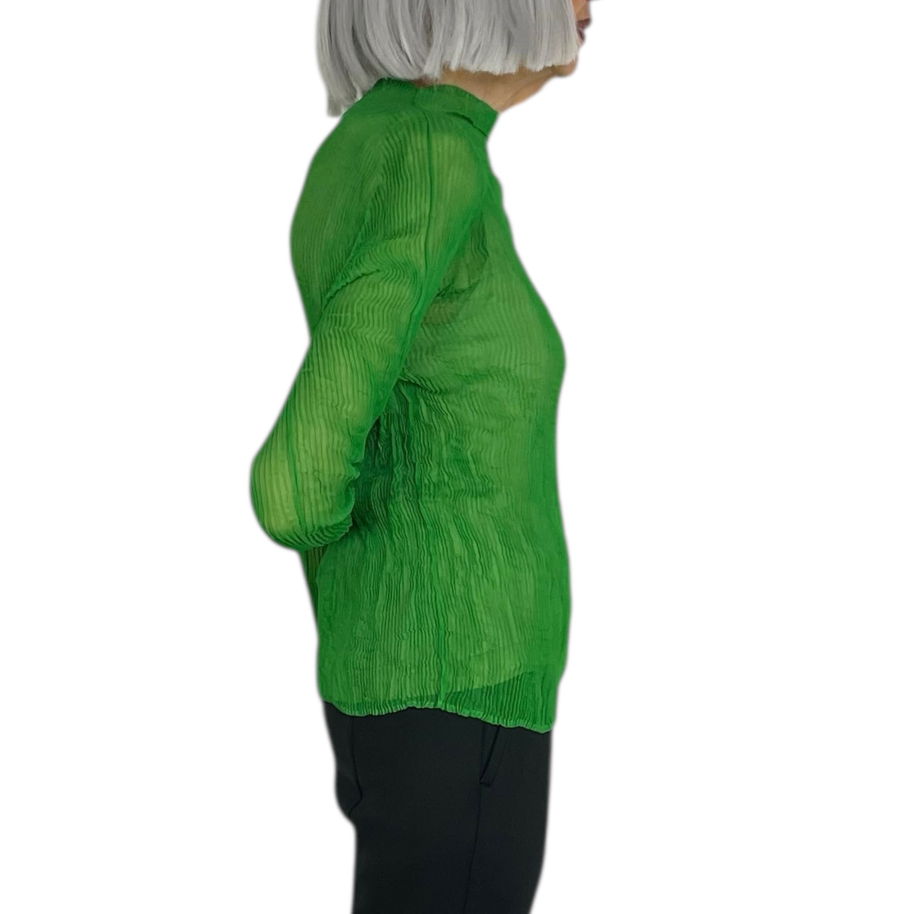 Twist pleated hi-neck top with long sleeves and a slim fit.