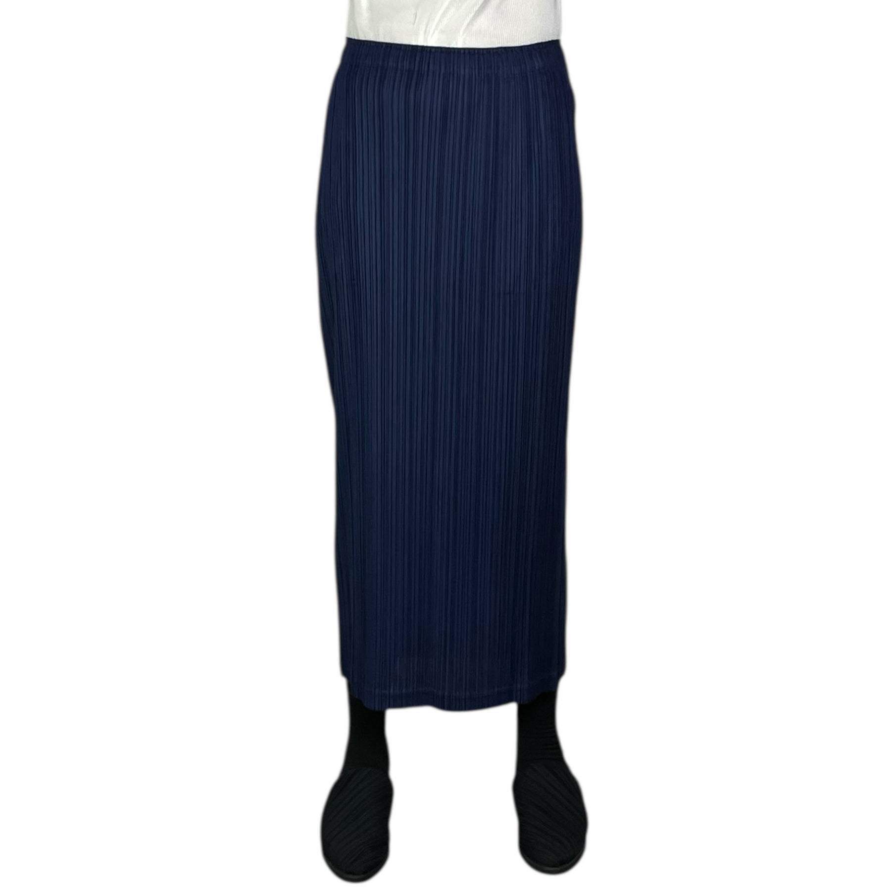 Mid-weight straight skirt with elasticized waistband and two side pockets.